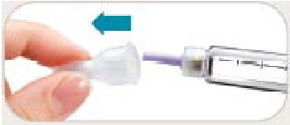 • Trek de buitenste naaldbescherming eraf. Gooi deze niet weg. De buitenste naaldbeschermer zal worden gebruikt als u de naald van de pen verwijderd na de injectie.